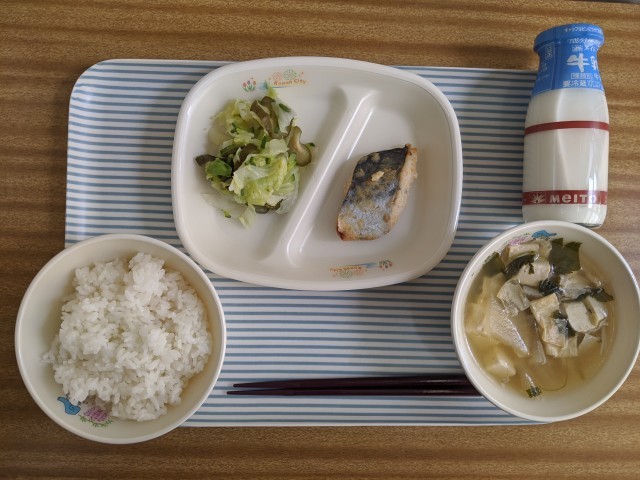 学校行事 【献立】 ごはん ぎゅうにゅう さわらのさいきょうやき しばづけのあえもの ゆばのすましじる 今日は京都府の郷土料理です。京都府は寺院が多く、肉や魚を使わない精進料理が古くから作られ、大豆や野菜の加工品の技術が発達していきました。