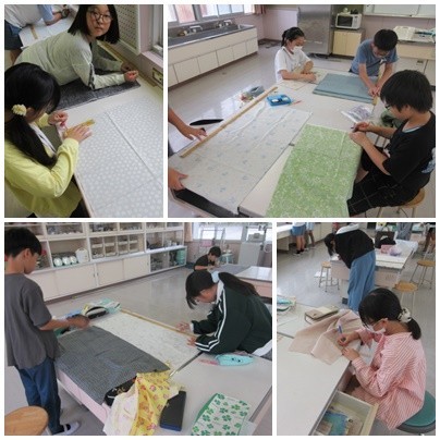 5年生は家庭科の学習でトートバッグ作りをしています。
