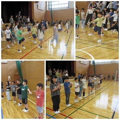 4年生が体育館で古西っ子発表会の練習をしていました。