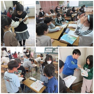 3年生の外国語活動では、好きな食べ物、色、アニメなどを互いに質問し合っていました。