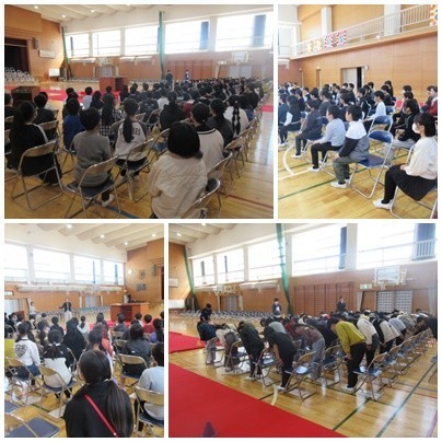 また、3時間目は卒業式の練習の様子を中学校の先生方に見ていただきました。