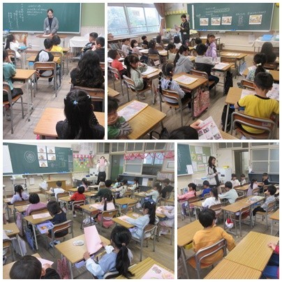 1年生と2年生が、音楽科の時間に担任の先生を招待して、歌や合奏をプレゼントしていました。