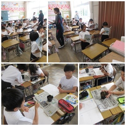 3年生は図画工作科の授業で、絵の具を使って絵を描いていました。