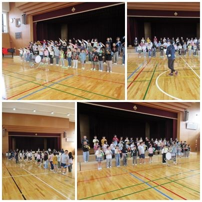 6年生が体育館で古西っ子発表会の練習をしていました。