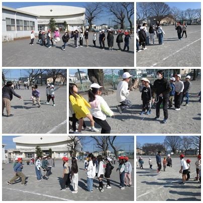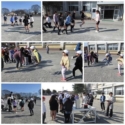 たくさんの児童が昼放課に運動場に出て、長なわの練習をしていました。