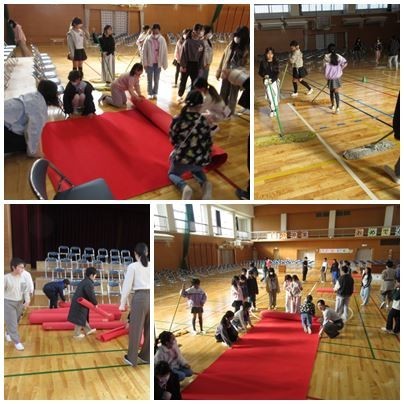 5年生が卒業式会場の準備を一生懸命やっていました。