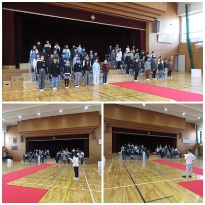 朝は寒かったのですが、時間が経つにつれ、徐々に暖かくなってきました。それでも、体育館は日差しが弱く少し寒いです。そのような中ですが、体育館では卒業式の練習を行いました。