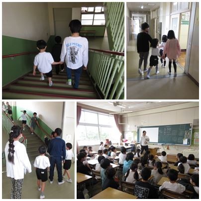保健室や家庭科室の特別教室など、1年生を連れて紹介していました。