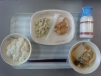【献立】ごはん ぎゅうにゅうプルコギだいずもやしのナムルサムゲタンふうスープ サムゲタンは韓国料理の一つで、鶏肉に米や野菜を詰めて煮込みます。今日は、鶏肉のうま味をきかせただしに、米や野菜を入れてサム...