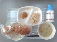 【献立】あいちのこめこパン ぎゅうにゅうとりにくのソテーいちじくソースがけさつまいもときのこのシチューキャベツのツナサラダ いちじくは安城市や碧南市など、愛知県内で多く栽培されている果物で、産出額は全...