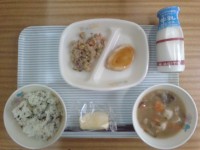 【献立】わかめごはん ぎゅうにゅうかじきのてりやきおからとえだまめのいりにすりおろしれんこんのけんちんじるりんご すりおろしれんこんのけんちん汁は、古知野中学校の生徒が考えてくれた応募献立で...