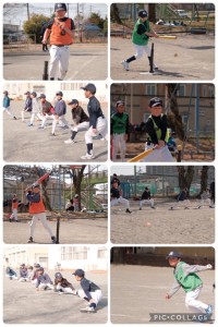 3.4年生もキャッチボールをしたり、ゴロを取る練習やバッティングをした後1.2年生と合同でティーボールをしました。
