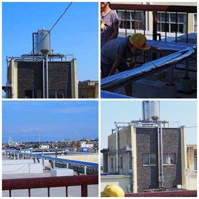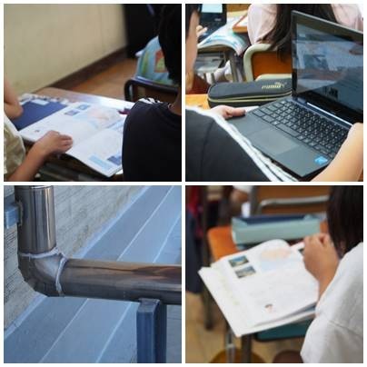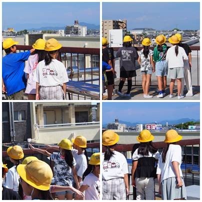 4年生社会「水はどこから」学校の蛇口の水は,どこからどのようにやってきたのか,校内を巡りながら調べました。行き着いた先は屋上でした。
