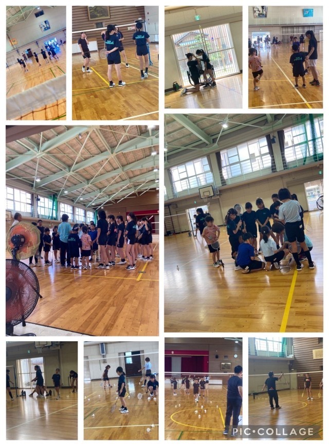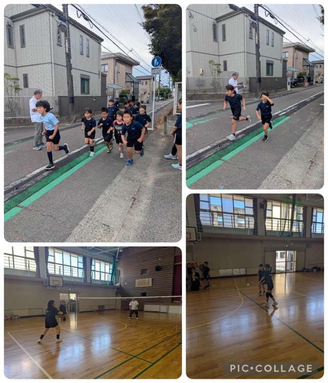 午前中はバドミントンの練習。6年生が修学旅行で不在のため5年生が中心となって声掛けします。まず外周を走りタイム測定。みんな前回よりも記録を伸ばそうと頑張って走りました。バドミントンでは来週の試合に向けて出場ペアで試合形式の練習とコーチから個別レッスンを受けました。