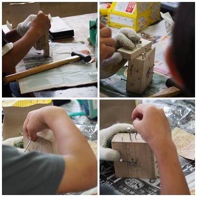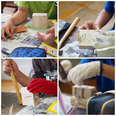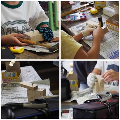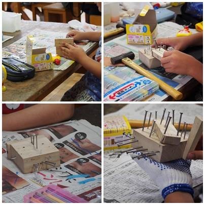 3年生は、くぎをうつ学習です。なかなか思うようにささらないこともありますが、徐々に上達してきました。
