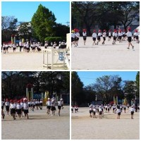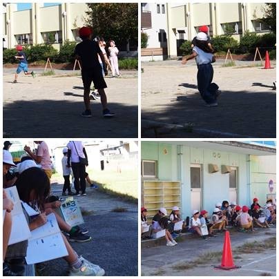 3年生理科、1時間目にかげふみ遊びをしています。