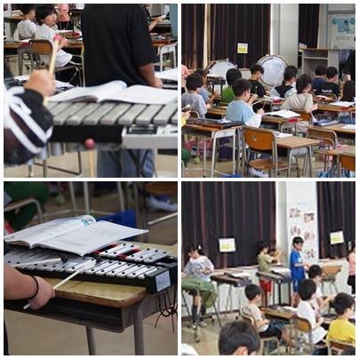 音楽では、合奏練習中です。木琴や鉄琴の音がきれいに響き渡りました。