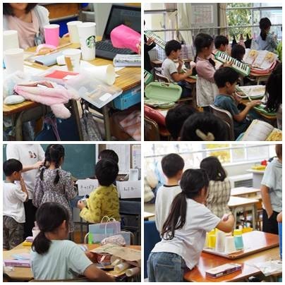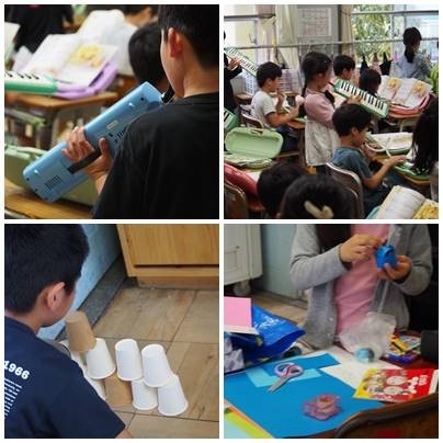 音楽、鍵盤ハーモニカを使っていろいろな曲を演奏しました。