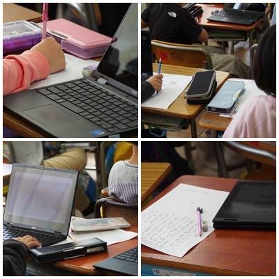 2年生、写真を見て土曜日を思い出しながら、運動会の振り返りをしています。