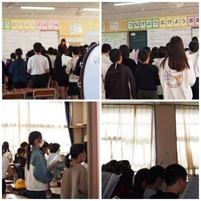 お昼の時間、歌声が聞こえるなあと、声の聞こえる方に行くと、合唱パート練習をしていました。