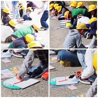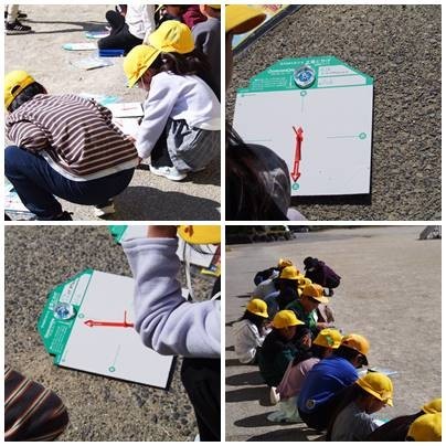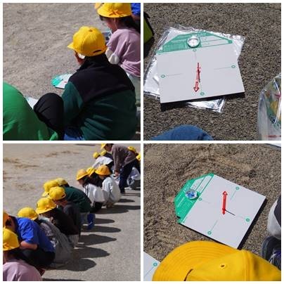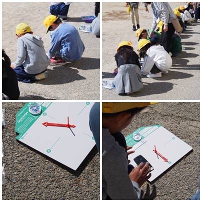 「(方位磁針が)なかなかとまらないー」などと苦労しつつも、無事、太陽とかげの位置を記録できました。