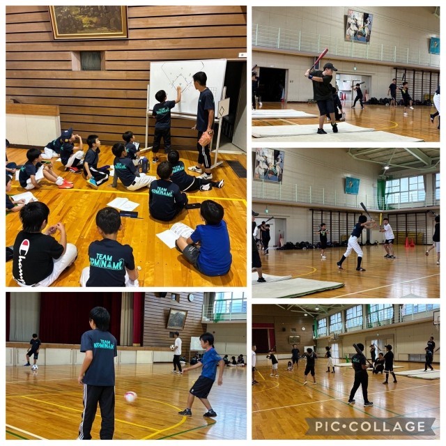 高学年はバッティングフォームの確認やサッカーの練習、低学年は試合に向けて野球の座学の勉強や基礎体力作り、体育館でもやれる事はたくさんあります。