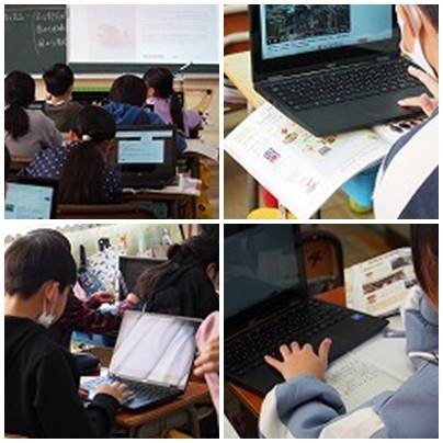 4年生保健、クロームブックを使い、からだの成長について学んでいます。社会では、愛知県の伝統工芸品を調べています。