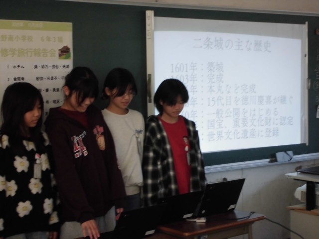 本日は6年1組、3組で修学旅行報告会を行いました。