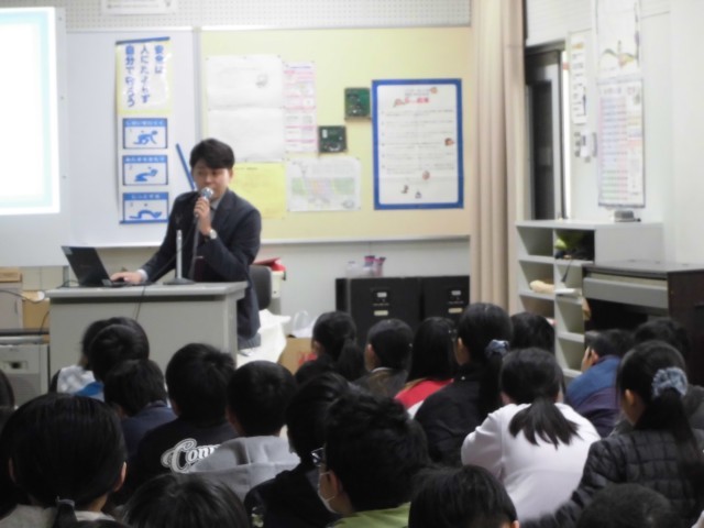 本日6年生は、NHKアナウンサーの片平 和宏さんをお招きして、アナウンサーの仕事内容や目標に対して全力で取り組むことの大切さについて話をしていただきました。児童たちは普段なかなか知ることのできないアナウンサーの仕事内容ややりがいなど貴重な話を目を輝かせながら聞いていました。とても貴重な経験ができ、今後のキャリア学習が一層楽しみになったと思います。