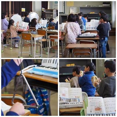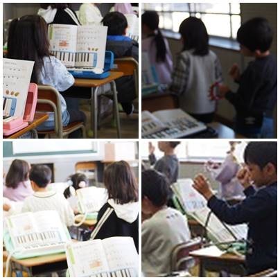 1年生音楽、「どんぐりころりん」すずやカスタネット、いろんな楽器をつかって演奏しました。