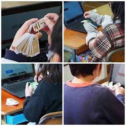 1年生、繰り下がりのある引き算の練習をしています。すらすらとカードがめくられていきます。
