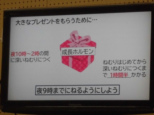 4年生の発育測定と保健指導を行いました。よい睡眠について、レム睡眠とノンレム睡眠について考えました。深い眠り→ノンレム睡眠中には成長ホルモンが多く分泌されるので、元気になったり、体が成長したり、心が落ち着いたりします。1時間半ごとにレム睡眠とノンレム睡眠は繰り返されると言われていますので、「早寝をすることでノンレム睡眠の訪れる回数が増える」ということに気づいていました。自分の健康のために考え、行動できるようご家庭でも声掛けをお願いいたします。