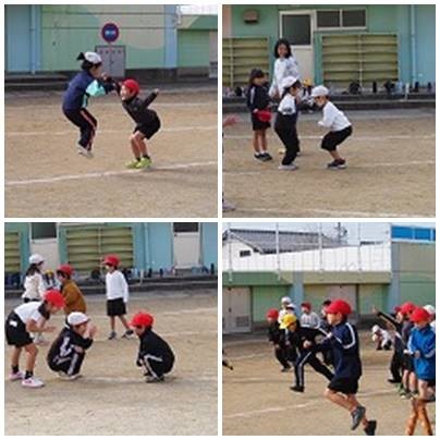 1年生体育「いろいろな動きづくり」体を使ったじゃんけんを楽しみました。