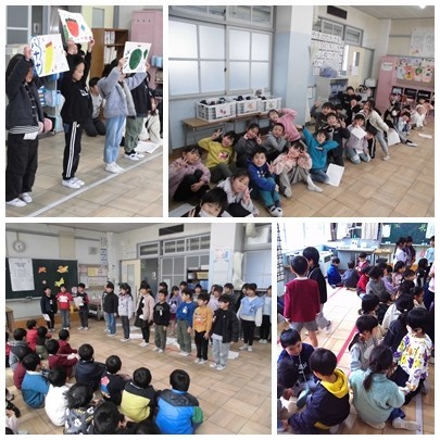 1年生は、年長さんたちを学級にお迎えし、クイズやゲームをして一緒に楽しい時間を過ごしました。