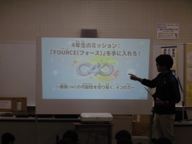 先日、学年集会を行い、学年通信でもお伝えした目標「FOURCE(フォース)」について改めてみんなで確認しました。