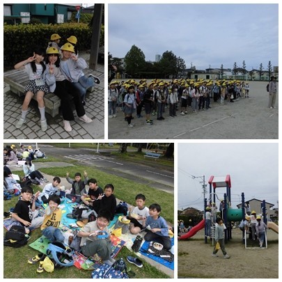 今日は校外学習で江南市を散策しました。また、公園ではみんなで仲良く元気に遊びました。保護者の皆様、お弁当や予備のお茶の準備などありがとうございました。