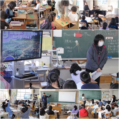 3年理科「豆電球にあかりをつけよう」では、豆電球と乾電池、導線つきソケットを用いてあかりのつくつなぎ方を調べています。