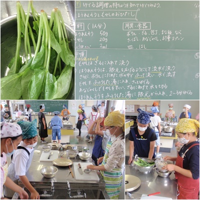 写真上:5年 家庭科「ゆでる調理をしよう」