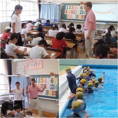 写真中:3年 外国語活動 4年 水泳指導