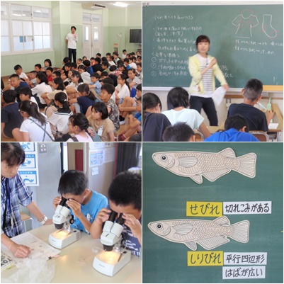 写真中:5年理科「メダカのたまごを双眼実体顕微鏡で観察してみよう」