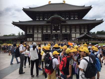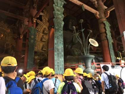 13時50分、東大寺を見学中。全員、元気いっぱいです。