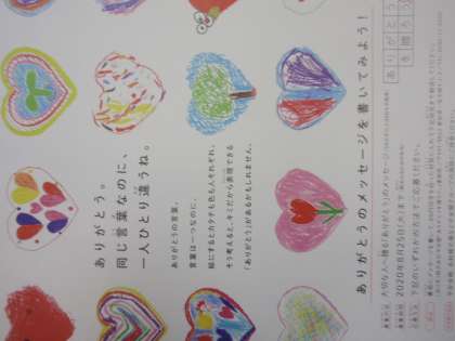 さて,みなさんが安心して学校生活を過ごせている今,忘れてはならない「ありがとうございます」があります。実は,みなさんが下校した放課後,先生たちは,みなさんの机と椅子,トイレなどの消毒作業を続けていますが,とても時間のかかる仕事ゆえ,みなさんのおうちの方にお手伝いいただいているのです。先週も,先々週も。雨が降る日もご来校いただき,みなさんの机と椅子を丁寧に消毒していただいています。みなさんは,大人になったとき,こうしたボランティアができるでしょうか。お手伝いいただくために,大切な時間を使わせてしまっていることに,申し訳ない気持ちになります。放課後のことですから,みなさんが直接「ありがとうございます」と御礼を述べることは難しいわけですが,感謝の気持ちは持ち続けていてほしいものです。みなさんが,「ありがとうございます」の気持ちを伝える方法があれば工夫してみましょう。