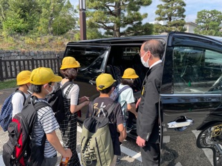 大政奉還の歴史的舞台である二条城の見学を終え、午後0時20分 予定どおりタクシー分散研修を始めました。