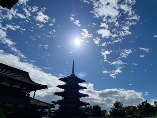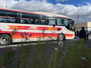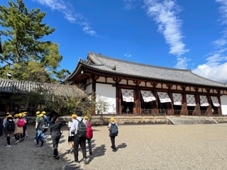 午後2時30分 法隆寺での見学を終え、学校に向かいます。