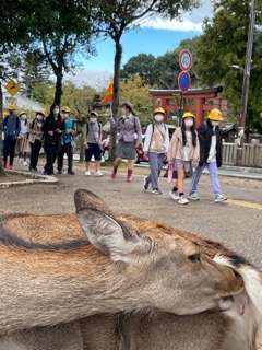 午後5時22分 江南市内に入りました。まもなく先頭バスは学校に到着します。