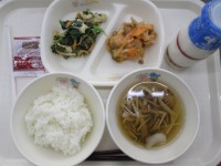 写真下:調理実習(おにぎりと味噌汁)に取り組む5年1組