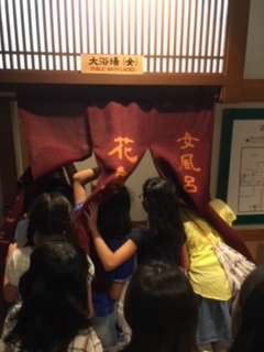 入浴タイム1.2組終了。午後8時50分からは3.4組。元気な声が風呂場に響いています。