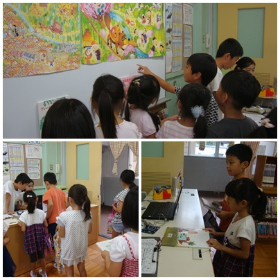 休み時間、図書室をのぞくと、1年生の子が昔話の本を借りているところに遭遇しました。先日、ブックトークで昔話の話を聞いて、たくさんの子が興味を持ってくれたようです。「お話ノート」に昔話を読んだ足跡がたくさん残せそうです。