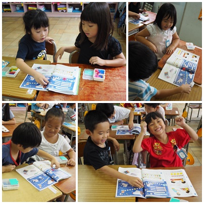 9月10日(月)の3時間目に、1年5組で、「算数すごろく」をしました。数直線上で「右にいくと数が増える」「左にいくと数が減る」ということを、遊びを通して、楽しく学ぶことができました。