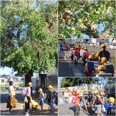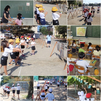 1年 水鉄砲遊びを楽しみました。道具を工夫すると、友だちと楽しく遊べるね。